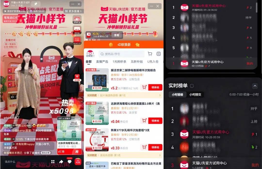 在平台内,直播生态进一步构建了拉新转化的“信任加速场”。天猫U先试用通过“官播+达播+店播”的立体化布局,将直播流量高效转化为品牌客资。