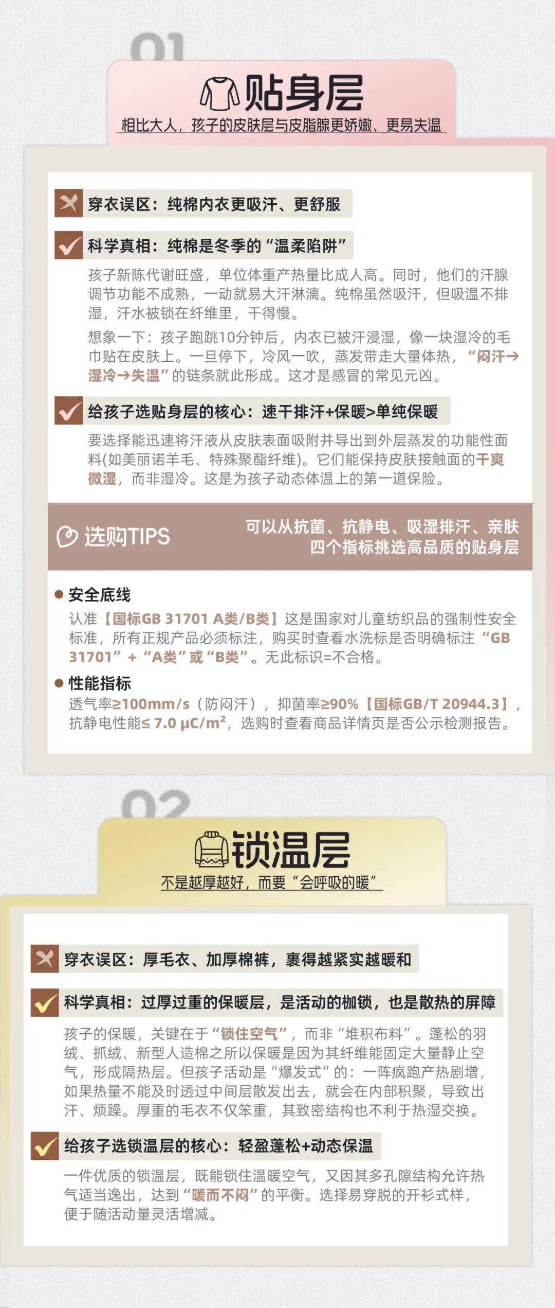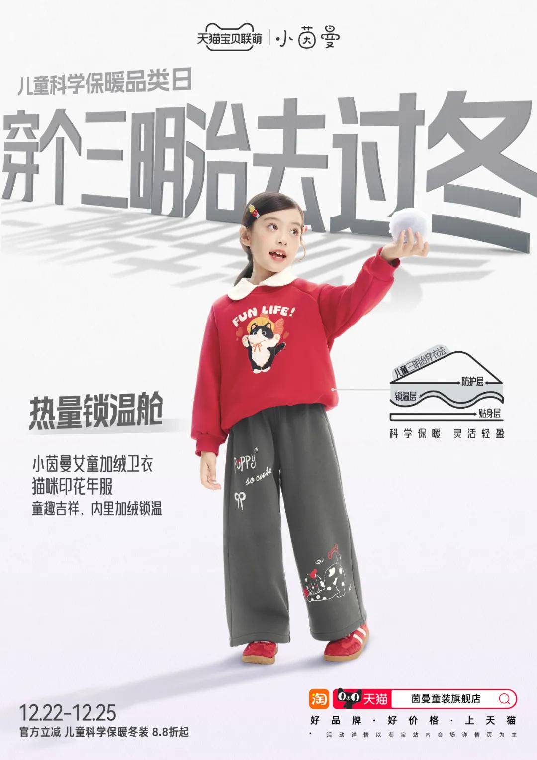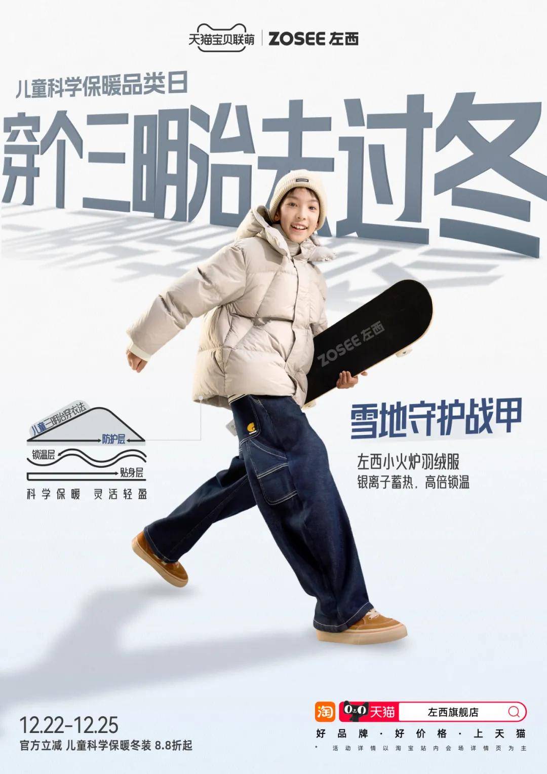 电商代运营公司-告别冬季盲目穿衣,天猫“儿童三明治穿衣法”引领保暖科学化摘要: 从经验主义到科学保暖,儿童冬装全面升级 寒潮席卷,上海95后妈妈思忆给3岁儿子挑选冬装时,会查看面料安全等级标签,反复比对充绒量与绒子含量,同时会关注三防、自发热等功能。 “老一辈觉得穿的越厚越暖,现在才知道孩子代谢旺盛,选对材质和穿法比单纯加衣更重要。”思忆的选择,正是当下年轻父母育儿观念转变的缩影,儿童科学穿衣法正从育儿圈层的专业共识,逐渐成为大众消费市场的新潮流。 孩子的皮肤角质层仅为成人三分之一,皮脂腺分泌不足成人一半,热量易散失且新陈代谢速率是成人的1.5倍,加上孩子们天性爱动,跑跳不停,活动量远大于成人,爱出汗却缺乏成熟的体温调节能力,一动大汗、一静畏寒的痛点尤为突出。传统堆叠式穿衣容易带来闷罐效应,难以适配儿童的生理特点与活动需求。也由此,儿童衣物对“湿度管理”和“热量调节”的要求更高。孩子保暖逻辑和普通成人不同,而是更类似户外运动人群。 天猫母婴亲子行业童装童鞋小二表示,孩子活动状态更多:教室里安静上课、课间嬉闹、体育课跑跳、周末户外活动等等,应对不同状态,更需要能够适配环境、动静状态的保暖体系。这个冬天,天猫联合十大童装童鞋品牌,打造“儿童三明治穿衣法”科学保暖冬装品类主题日。 为了让家长们选购时有更明确的选购标准,天猫推出了高于国标的新团标:《高品质婴幼儿及儿童保暖内衣团体标准》、《儿童羽绒服新团标》。对儿童家居服的抑菌率、透气率、柔软度、抗静电等维度做了更高要求;羽绒服也从基础安全的银标、品质升级的金标,再到黑金标顶级标准,形成覆盖不同需求的品质梯度。 将科学保暖理念转化为可实践的消费导购,天猫提炼出「雪地守护战甲」、「派对小明星」、「热量锁温舱」、「呼吸感小暖皮」四大趋势赛道。其中主打“三防御寒”的雪地守护战甲赛道,聚焦孩子户外玩雪、上学通勤等场景,主推防风防水以及轻量化防护的外层单品;主打“时尚有型”的派对小明星赛道由此延伸,将功能面料与潮流设计结合;主打“锁温发热”的热量锁温舱赛道则聚焦轻量化锁温材质,适配灵活穿脱;而孩子运动后贴身层闷湿易滋生细菌的痛点,让“抑菌干爽”呼吸感小暖皮赛道成为刚需,该趋势主打透气抑菌的功能型内层。 各大品牌基于自身材料和技术的优势,也推出了更符合科学保暖理念的儿童冬装。 高梵Kids童装总经理木兰直言:「科学守护,而非简单包裹」是品牌一直坚守的初心。当产品能精准匹配一个具体场景的痛点时,就会超越单纯的需求,成为父母的首选。今年冬季,高梵KIDS“黑金小火山”系列因其防风防泼水面料和科技保暖的经典设计,成为小朋友冬季出行场景的首选;“小童精灵帽”系列也因对新锐色彩的精准把握和便携性,成为搭配亮点和爆款单品。 左西总经理吴文华也敏锐察觉到了市场变化:“冬季穿搭已从够厚转向场景化以及功能化,家长选购时会同步关注轻量保暖、防风防水等多个维度。”左西推出小火炉3.0羽绒服以四层升级结构,实现轻、暖、透、耐用的平衡,满足孩子上学、户外、运动等多场景穿着。 “波司登童装非常认可天猫此次想传递的儿童三明治穿衣法理念,这与品牌长期以来坚持的专业防护、科技创新的发展方向高度契合,”波司登童装产品部总监陶丽娟表示。在参与此次品类日前,品牌已通过大数据分析发现,消费者对于儿童冬装的细分功能需求尤为关注,如极寒防护、轻量保暖和抗菌防污。今年,波司登也推出了与中国先锋设计师陈安琪的新年联名系列,将马年印花与纳米四防科技相结合,科技先锋的同时也更有中国年味。同时,极寒系列也升级第六代极寒技术,首创BOBO黄金角,选用680+高蓬松度羽绒,实现专业级防风防水与透气排湿的平衡。 不仅要保暖,更要兼顾美学需求。TEENIEWEENIE KIDS品牌负责人单姗介绍,品牌不仅希望提供经典美学,更致力于针对儿童痛点提供专业解决方案。活动期间,品牌主推经典学院风功能科技系列,将功能科技融入品牌设计,用高效防风透湿面料实现既好看又好穿。 jellybaby则聚焦一站式穿搭,其新年红系列涵盖外套、背心裙、打底衫等单品,实现从内搭到外套一站配齐。巴拉巴拉天猫淘系负责人陈均表示,品牌新触达的场景拓展型家庭,格外追求家庭场景一致性与美学和功能性结合,这也成为品牌产品设计的重要考量,活动期间,旗下面包羽绒服凭借时尚与实用的平衡收获市场认可。 三明治穿衣法的中层更加关注热量锁定与轻量化。戴维贝拉主推的雪尼尔毛衣采用强捻工艺和高支紧密纺,用科学织物结构锁温而非堆叠厚度。茵曼童装的品牌卫衣内里加厚加绒,锁温又亲肤的同时,融入锦鲤、小猫等新年元素,兼顾功能与颜值,旗下小茵曼毛衣凭借柔软舒适的材质成为家长热门选择。 三明治穿衣法的贴身层关注的不仅仅是保暖,更要兼顾到儿童更娇嫩的皮肤特性,打造呼吸感小暖皮。此次活动期间,英氏推出了儿童内衣套装新年款礼盒,采用“天然面料×玻尿酸黑科技”,兼具7A抑菌与高透气性能,更标准的满足了家长对儿童贴身衣物透气、抑菌、保温的健康诉求。 天猫围绕科学保暖的核心,打造了内容种草、场景渗透以及转化的传播矩阵,既让科学穿衣理念深入人心,也为参与的